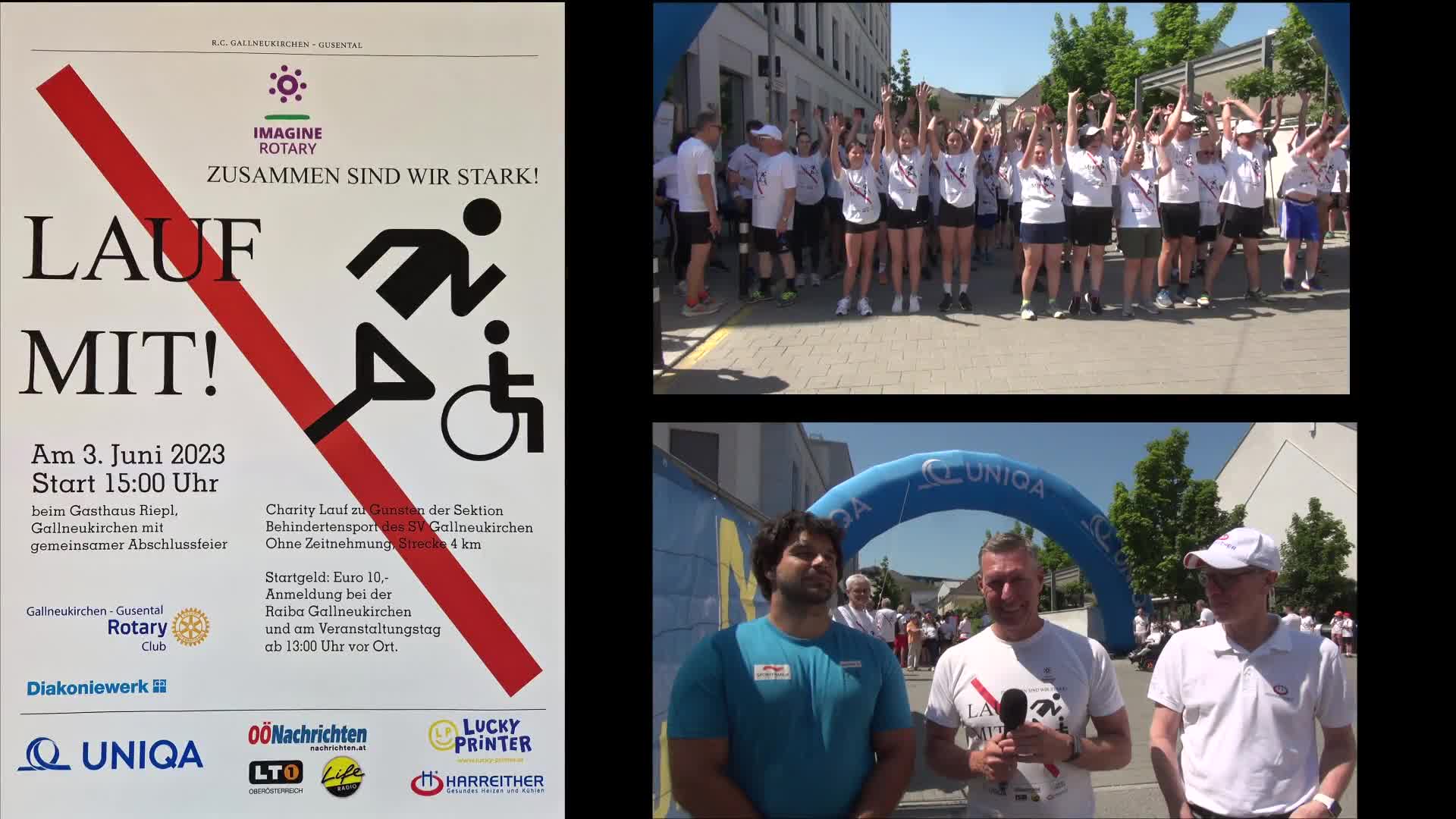 Zum insgesamt 15. Mal veranstaltete der Rotary Club Gallneukirchen-Gusental am Samstag das „LAUF MIT!“–Event. Mehr als 300 Läuferinnen und Läufer machten sich bei perfektem Laufwetter auf die 4km-Strecke in Gallneukirchen – und sammelten unter dem Motto „Zusammen sind wir stark“ die Rekordsumme von EUR 8.450,- für die Behindertensportabteilung des SV Gallneukirchen. Insgesamt konnten bisher schon über EUR 90.000,- für die Unterstützung des Behindertensports übergeben werden.